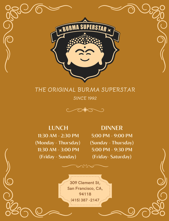 LUNCH Monday to Thursday 11:30am to 2:30pm, Friday to Sunday 11:30 am to 3:00 pm
